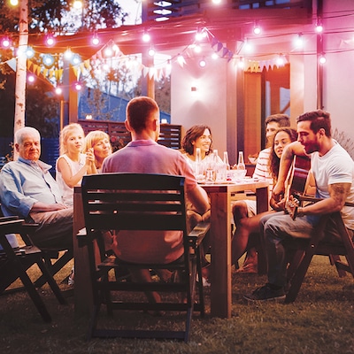 Light up the night and adorn your outdoor living space with this customisable festoon string light set. Whether it's for an intimate family setting or the perfect Zoom party backdrop, these bulbs instantly make any space more inviting. It has the ability to set different colours and also comes with pre-set lighting modes, all via the Connect SmartHome app. It even works with voice commands via your favourite virtual assistants, so "Hey Alexa, make it shine!".